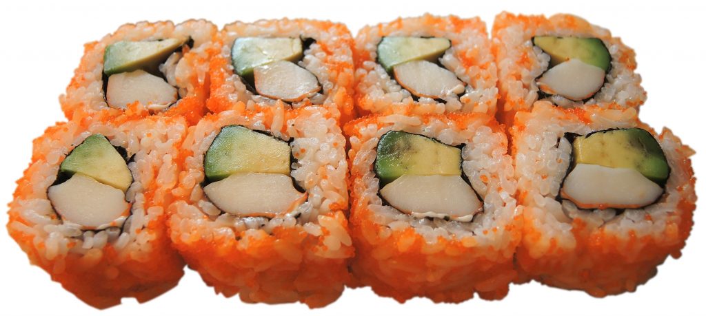 22. California: Surimi, Avocado, Mayo, FlugfischrogenPreis: 7,00€